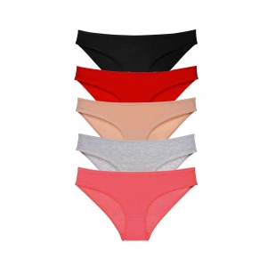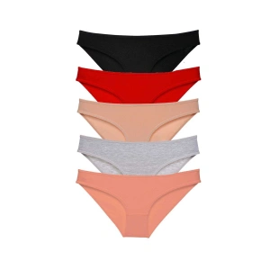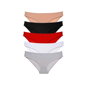 5 adet Süper Eko Set Likralı Kadın Slip Külot Siyah Kırmızı Ten Gri Pudra