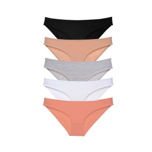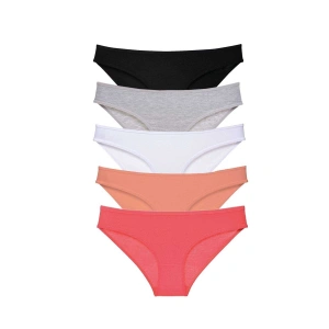 5 adet Süper Eko Set Likralı Kadın Slip Külot Siyah Ten Gri Beyaz Fuşya