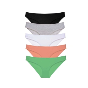 5 adet Süper Eko Set Likralı Kadın Slip Külot Gri Beyaz Pudra Yeşil Fuşya