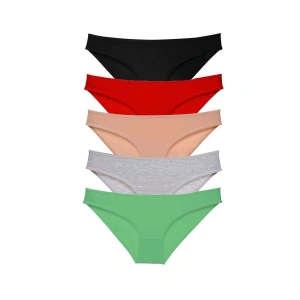 5 adet Süper Eko Set Likralı Kadın Slip Külot Siyah Kırmızı Ten Gri Yeşil