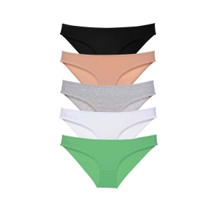 5 adet Süper Eko Set Likralı Kadın Slip Külot Siyah Ten Gri Beyaz Yeşil