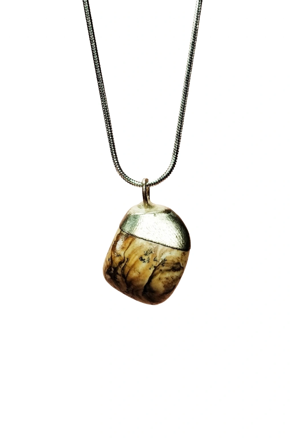 Jasper Doğal Taşı Zincirli El Yapımı Kolye Uç: 2 cm Zincir: 20 cm Kutulu