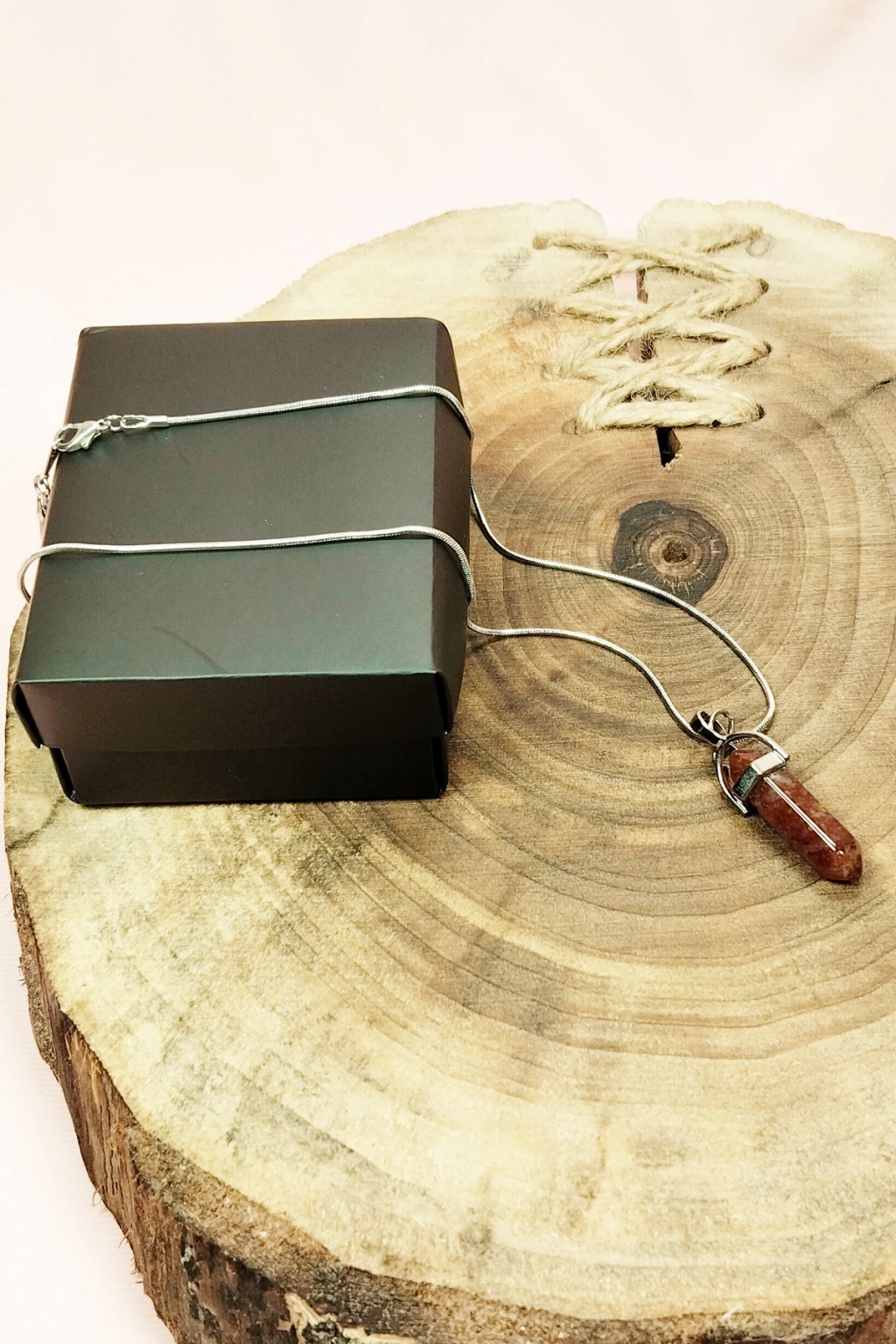 Jasper Doğal Taşı Zincirli El Yapımı Tasarımlı Kolye Uç: 3,5 cm Zincir: 20 cm Kutulu