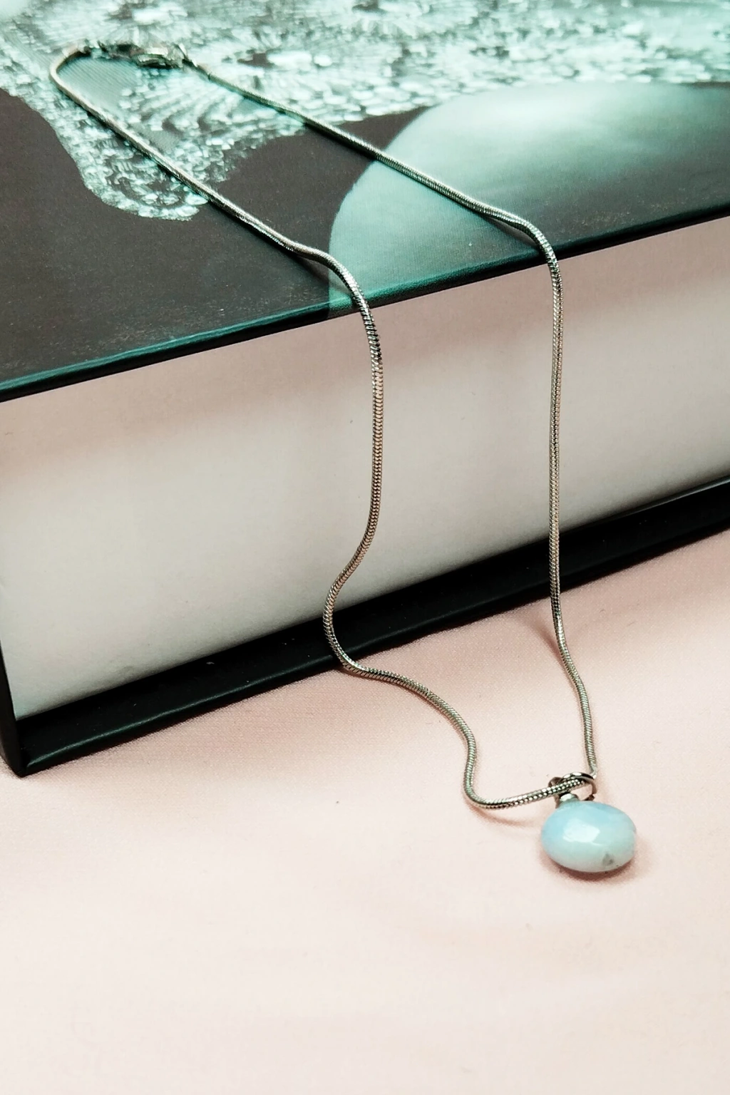 Kalsedon Doğal Taşı Zincirli El Yapımı Kolye Uç: 1,5 Cm Zincir: 20 Cm Kutulu