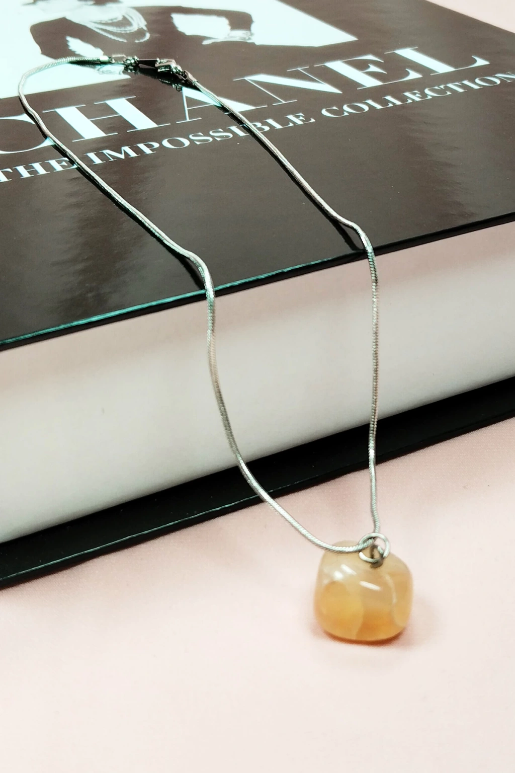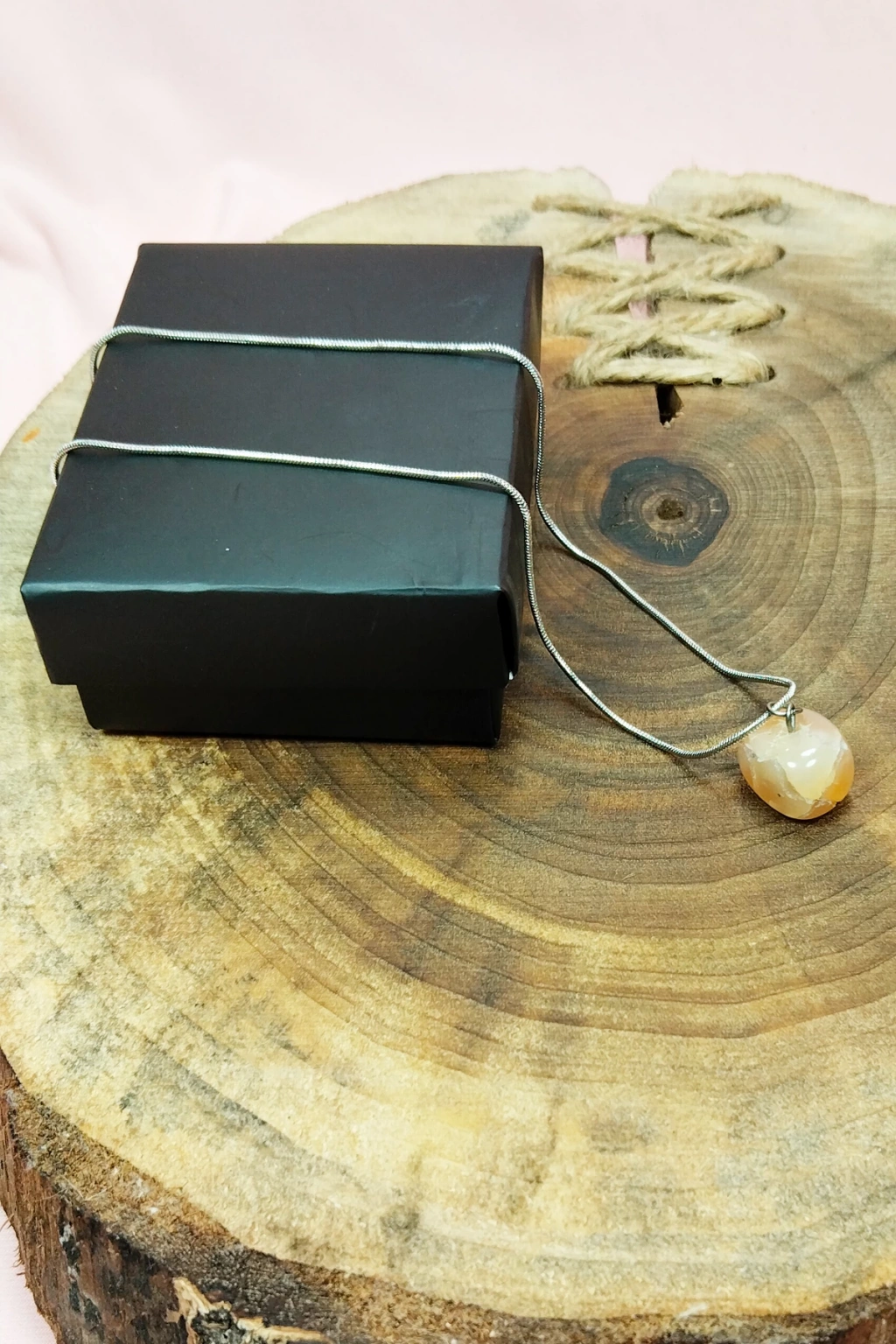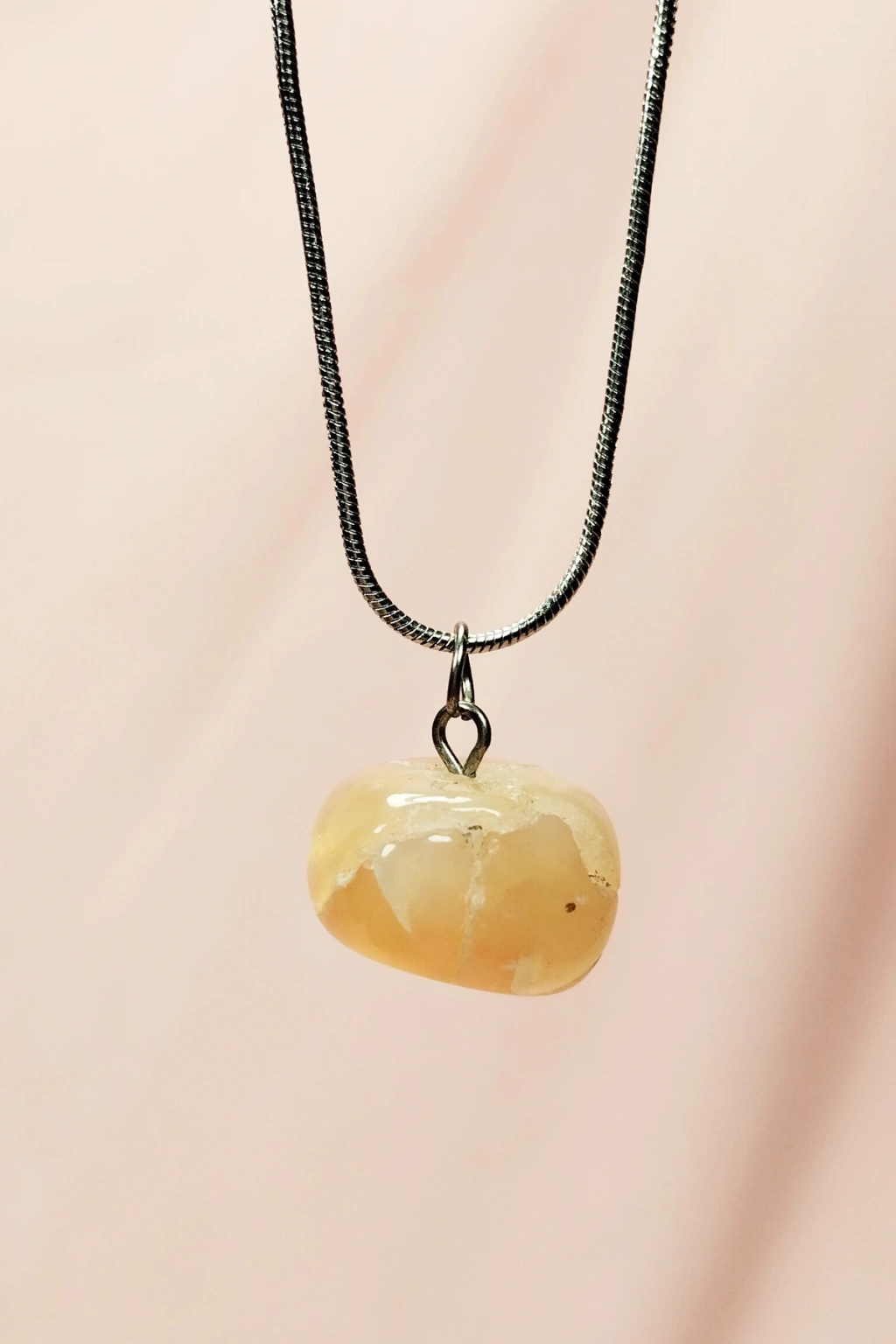 Kalsit Doğal Taşı Zincirli El Yapımı Kolye Uç: 1,5 Cm Zincir: 20 Cm Kutulu