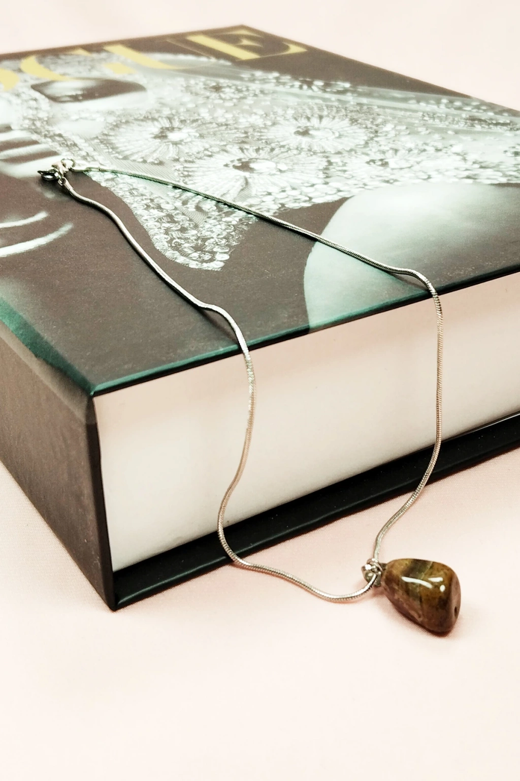 Kaplan Gözü Doğal Taşı Zincirli El Yapımı Kolye Uç: 2 cm Zincir: 20 cm Kutulu