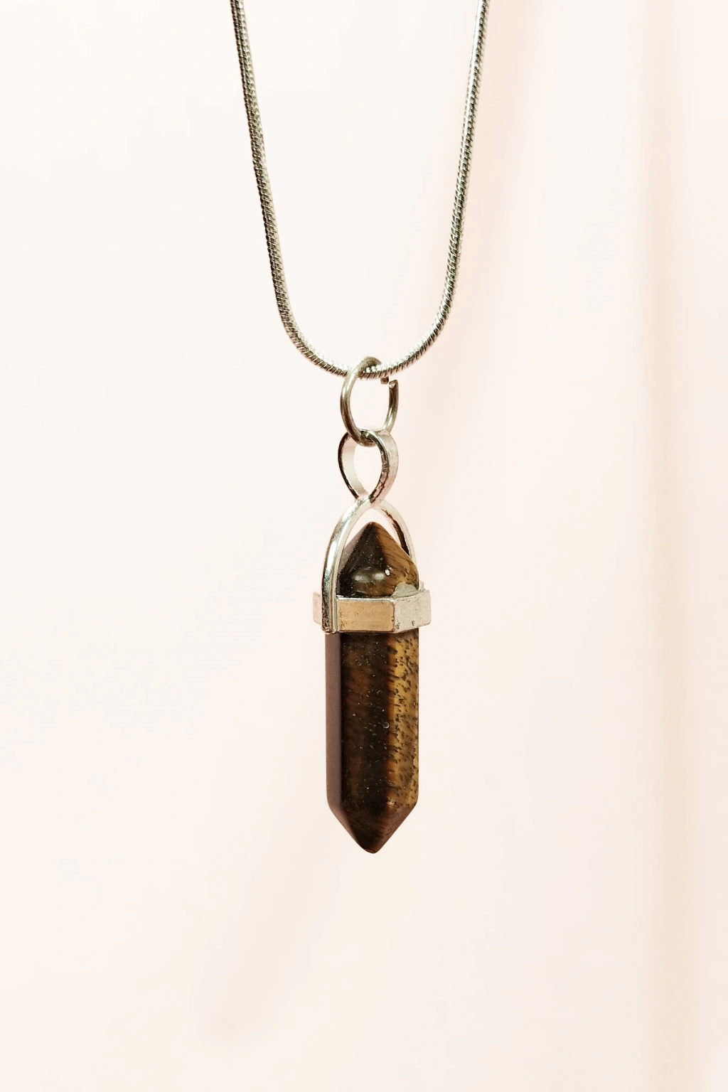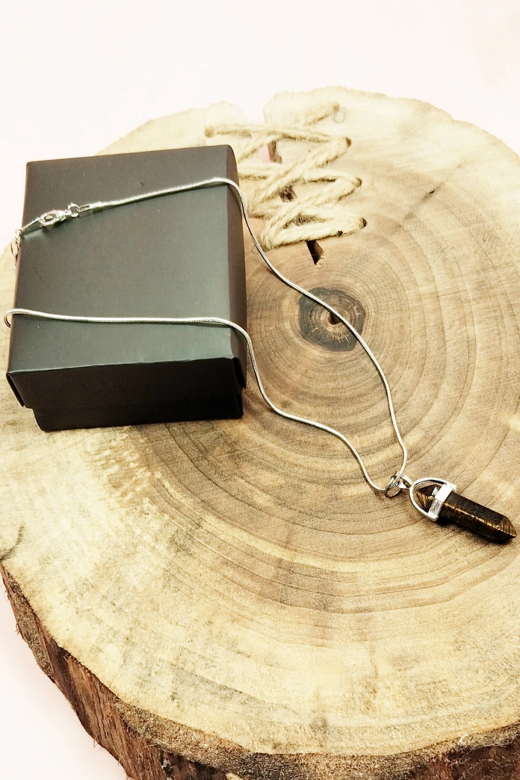 Kaplan Gözü Doğal Taşı Zincirli El Yapımı Tasarımlı Kolye Uç: 3,5 cm Zincir: 20 cm Kutulu