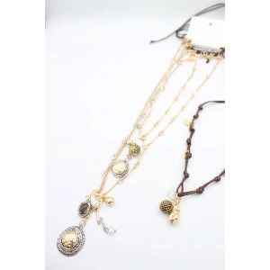 4'lü Metal İp Set Kolye - Altın