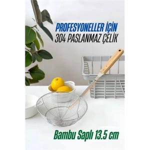 Turk Bambu Saplı Kevgir Süzgeç 304 Paslanmaz Çelik 13.5 cm
