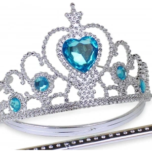Karlar Ülkesi Elsa Mavi Kalpli Taç Ve Mavi Asa Seti Çocuk Boy