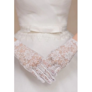 Beyaz Renk Kısa Dantelli Eldiven