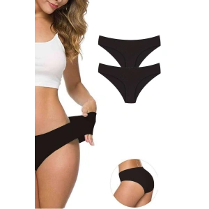 2 Adet Kadın Dikişsiz Lazer Kesim Esnek İz yapmayan Külot Siyah