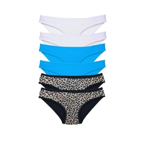 6 Adet Likralı Kadın Slip Külot Leopar Beyaz Mavi