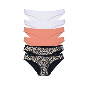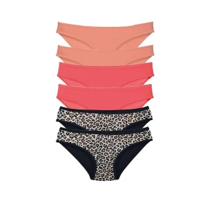 6 Adet Likralı Kadın Slip Külot Leopar Pudra Fuşya