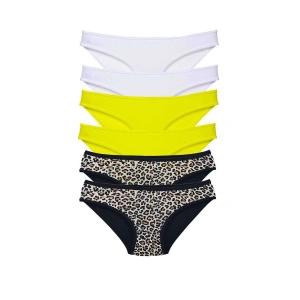 6 Adet Likralı Kadın Slip Külot Leopar Beyaz Sarı