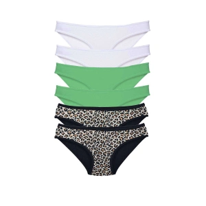 6 Adet Likralı Kadın Slip Külot Leopar Beyaz Yeşil