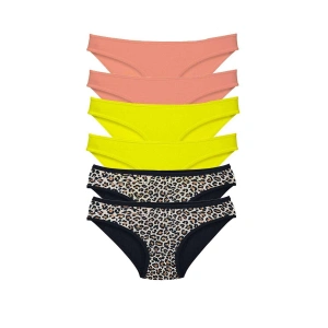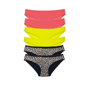 6 Adet Likralı Kadın Slip Külot Leopar Fuşya Sarı