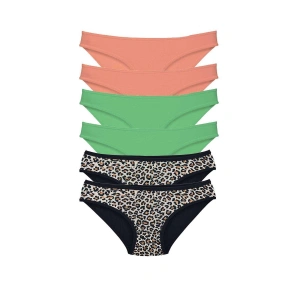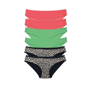 6 Adet Likralı Kadın Slip Külot Leopar Fuşya Yeşil