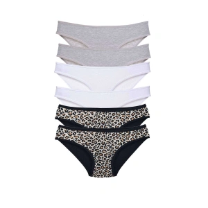6 Adet Likralı Kadın Slip Külot Leopar Gri Beyaz