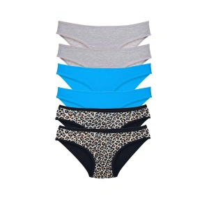 6 Adet Likralı Kadın Slip Külot Leopar Gri Mavi