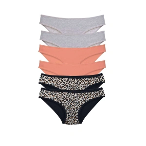6 Adet Likralı Kadın Slip Külot Leopar Gri Pudra