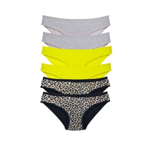6 Adet Likralı Kadın Slip Külot Leopar Gri Sarı