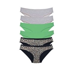 6 Adet Likralı Kadın Slip Külot Leopar Gri Yeşil