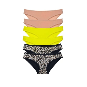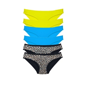 6 Adet Likralı Kadın Slip Külot Leopar Sarı Mavi