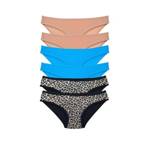 6 Adet Likralı Kadın Slip Külot Leopar Pudra Mavi