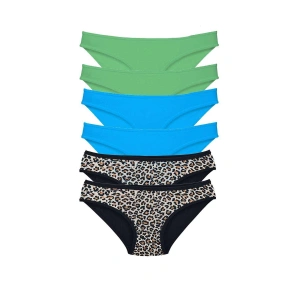 6 Adet Likralı Kadın Slip Külot Leopar Yeşil Mavi