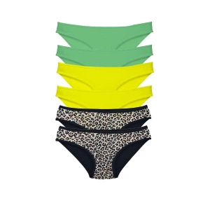6 Adet Likralı Kadın Slip Külot Leopar Yeşil Sarı
