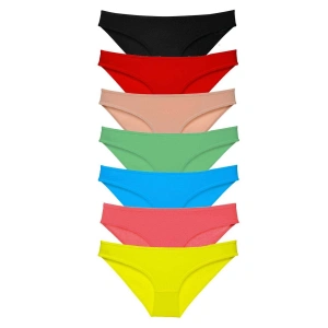 7 adet Süper Eko Set Likralı Kadın Slip Külot Çok Renkli