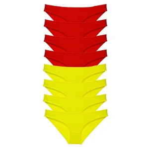 8 adet Süper Eko Set Likralı Kadın Slip Külot Sarı Kırmızı