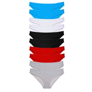 10 adet Süper Eko Set Likralı Kadın Slip Kırmızı Ten Gri Beyaz Mavi