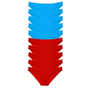 10 adet Süper Eko Set Likralı Kadın Slip Külot Kırmızı Mavi