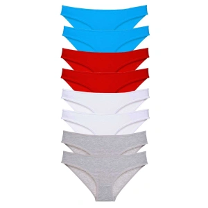 8 adet Süper Eko Set Likralı Kadın Slip Külot Siyah Kırmızı Beyaz Mavi