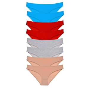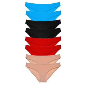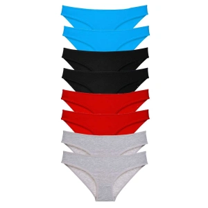 8 adet Süper Eko Set Likralı Kadın Slip Külot Siyah Kırmızı Ten Mavi
