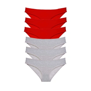 6 adet Eko Set Likralı Kadın Slip Külot Kırmızı Gri