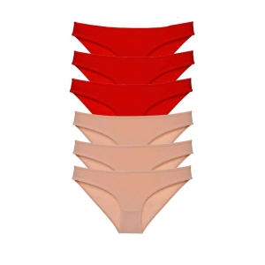 6 adet Eko Set Likralı Kadın Slip Külot Kırmızı Ten