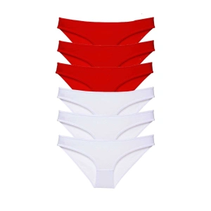 6 adet Süper Eko Set Likralı Kadın Slip Külot Kırmızı Beyaz