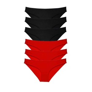 6 adet Süper Eko Set Likralı Kadın Slip Külot Siyah Kırmızı
