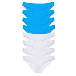 8 adet Süper Eko Set Likralı Kadın Slip Külot Beyaz ve Mavi