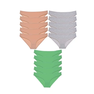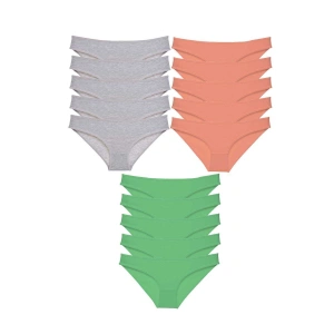 15 adet Süper Eko Set Likralı Kadın Slip Külot Gri Pudra Yeşil