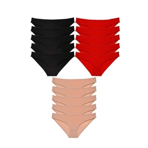 15 adet Süper Eko Set Likralı Kadın Slip Külot Siyah Kırmızı Ten Gri Pudra