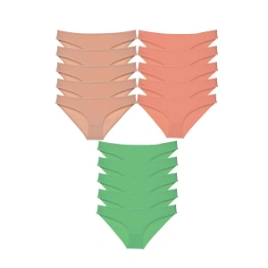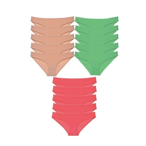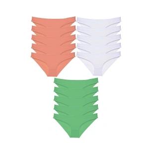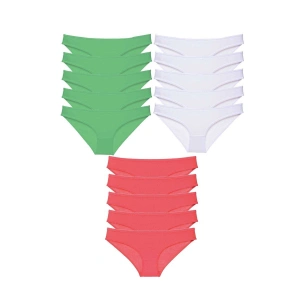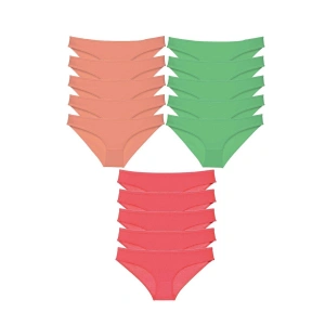 15 adet Süper Eko Set Likralı Kadın Slip Külot Ten Yeşil Fuşya