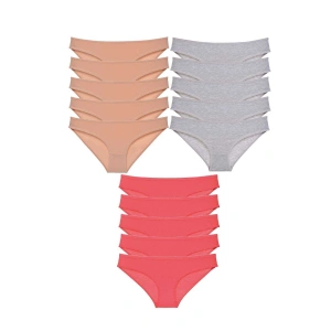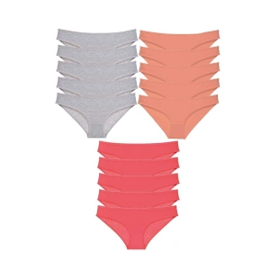 15 adet Süper Eko Set Likralı Kadın Slip Külot Gri Pudra Fuşya