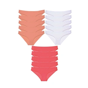 15 adet Süper Eko Set Likralı Kadın Slip Külot Pudra Beyaz Fuşya
