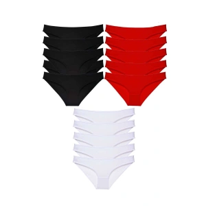15 adet Süper Eko Set Likralı Kadın Slip Külot Siyah Kırmızı Beyaz