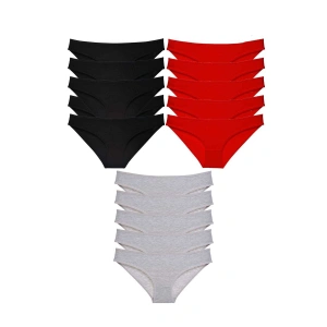 15 adet Süper Eko Set Likralı Kadın Slip Külot Siyah Kırmızı Gri