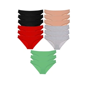 15 adet Süper Eko Set Likralı Kadın Slip Külot Siyah Kırmızı Ten Gri Yeşil